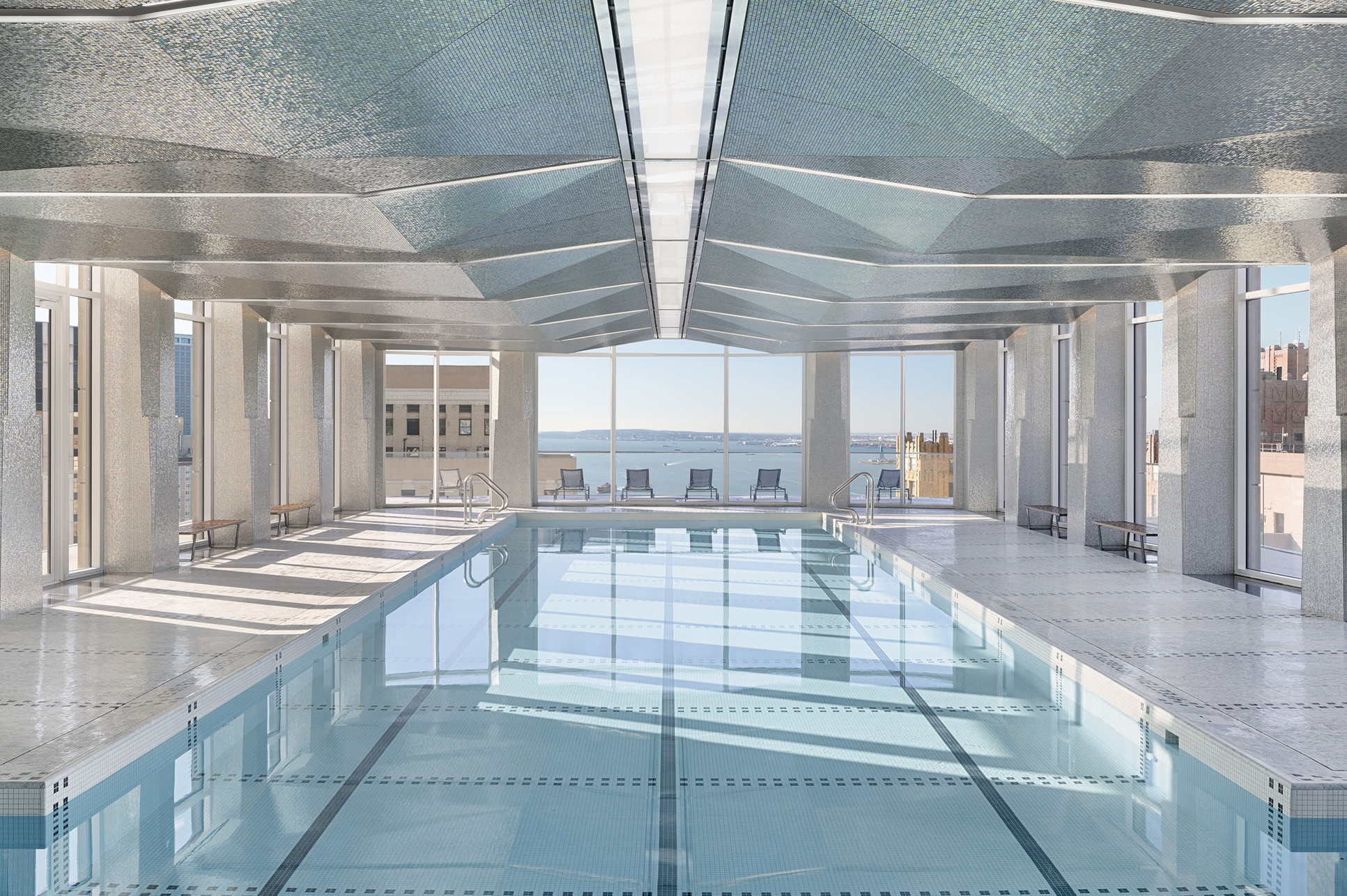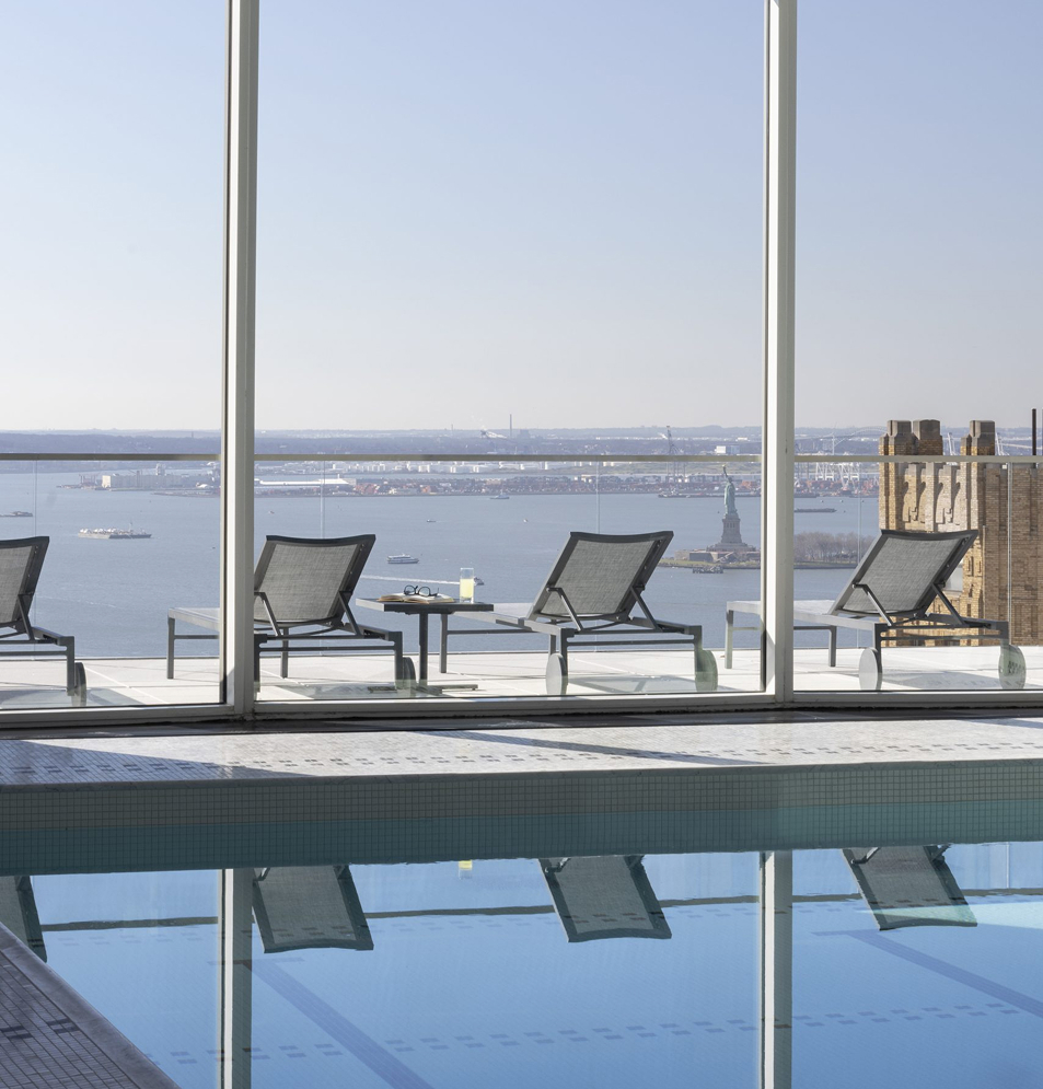 75-foot glass-enclosed swimming pool on the 38th floor with harbour views